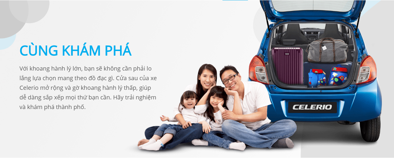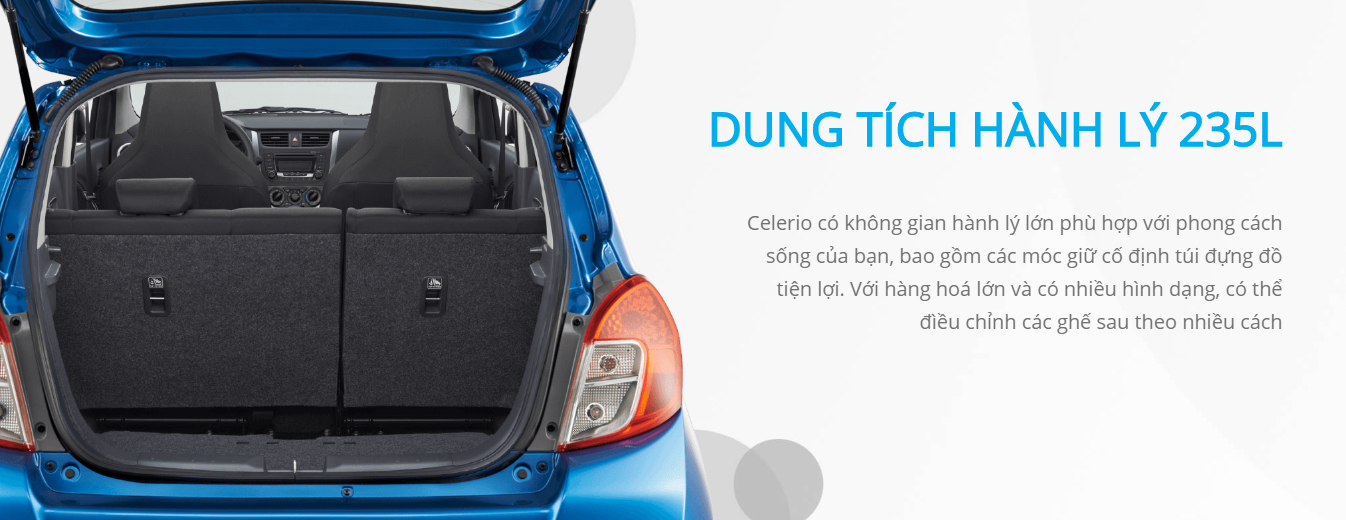 Với khoang hành lý lớn, bạn sẽ không cần phải lo lắng lựa chọn mang theo đồ đạc gì. Cửa sau của xe Celerio mở rộng và gờ khoang hành lý thấp, giúp dễ dàng sắp xếp mọi thứ bạn cần. Hãy trải nghiệm và khám phá thành phố.