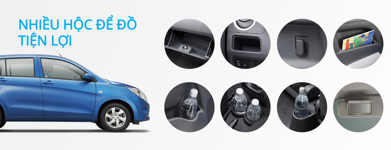 Celerio có không gian hành lý lớn phù hợp với phong cách sống của bạn, bao gồm các móc giữ cố định túi đựng đồ tiện lợi. Với hàng hoá lớn và có nhiều hình dạng, có thể đìều chỉnh các ghế sau theo nhiều cách.