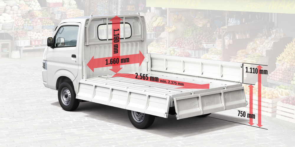 Một trong những thông số quan trọng của các loại xe tải là khả năng chở được bao nhiêu. Super Carry Pro hoàn toàn mới có thể vận chuyển khối lượng lớn mà vẫn duy trì khả năng phân phối trọng lượng hoàn hảo.